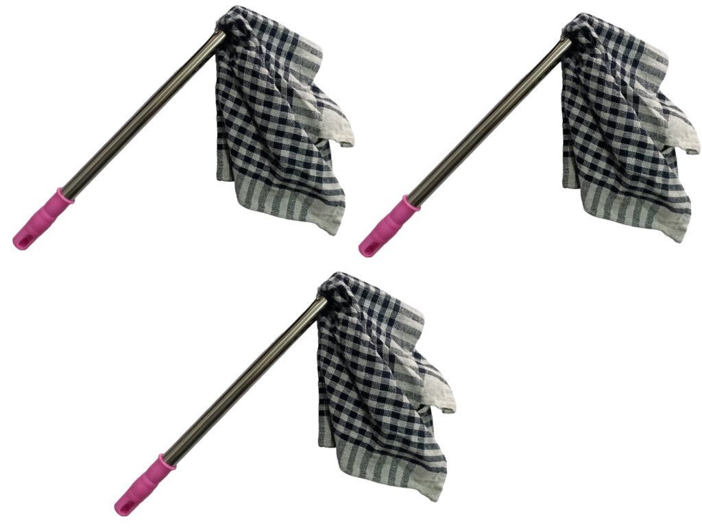 The Nimbose Magic Handy Dusting Jatakni pack of 3 features a rust-proof stainless steel handle and a large 100% cotton removable cloth (40 x 40 cm). It is washable, super-absorbent, and ideal for daily dusting at home, in the car, or at the office.